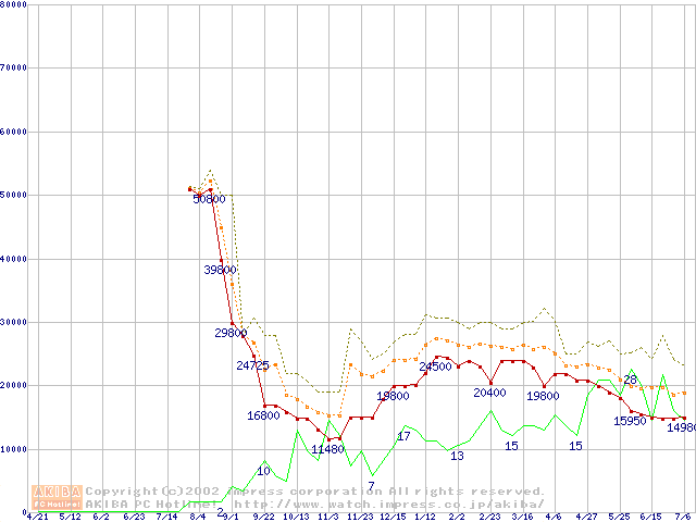 PC2100(DDR266) DDR SDRAM DIMM ECC対応 Registeredタイプの最安値推移