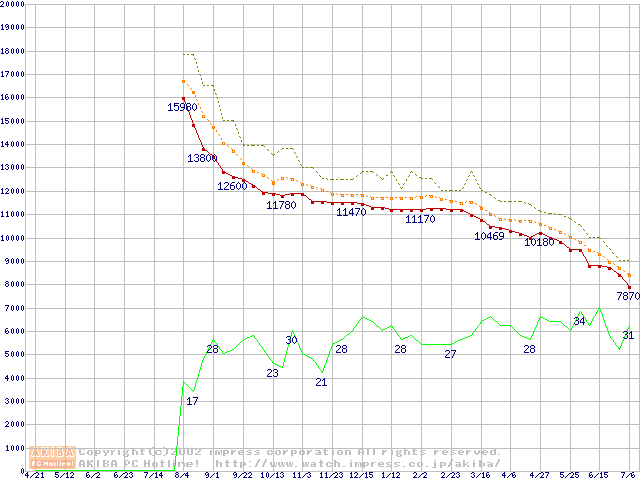 Barracuda ATA IV (7200rpm,UltraATA/100,2MB,40GB/Platter,流体軸受)の最安値推移