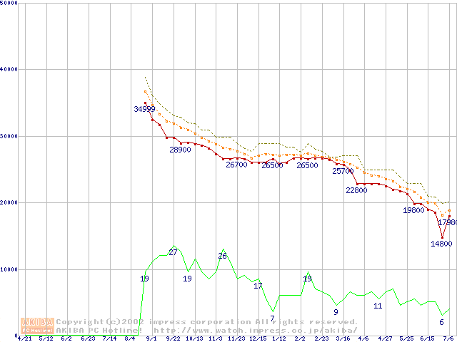 WD Caviar (7200rpm,UltraATA/100,2MB)の最安値推移