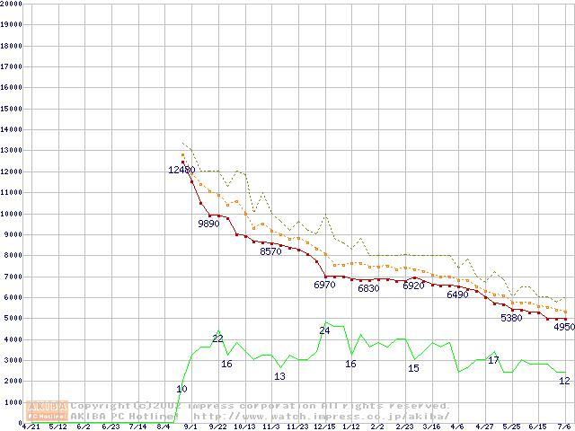 Socket A (Morgan,PGA,FSB 200MHz,L2 64KB)の最安値推移