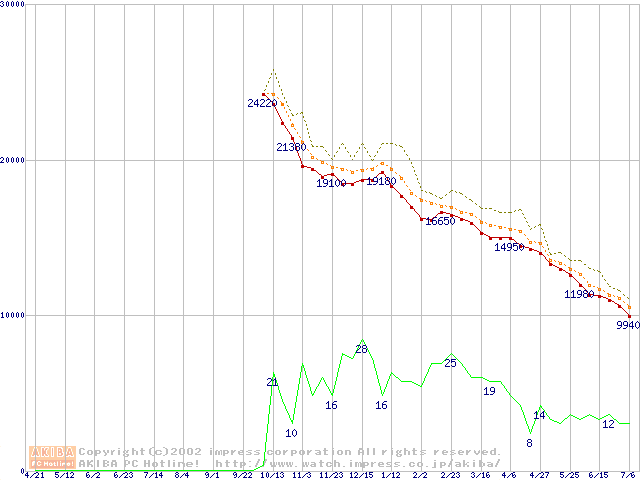 Socket A (OPGA,FSB 266MHz,L2 256KB)の最安値推移