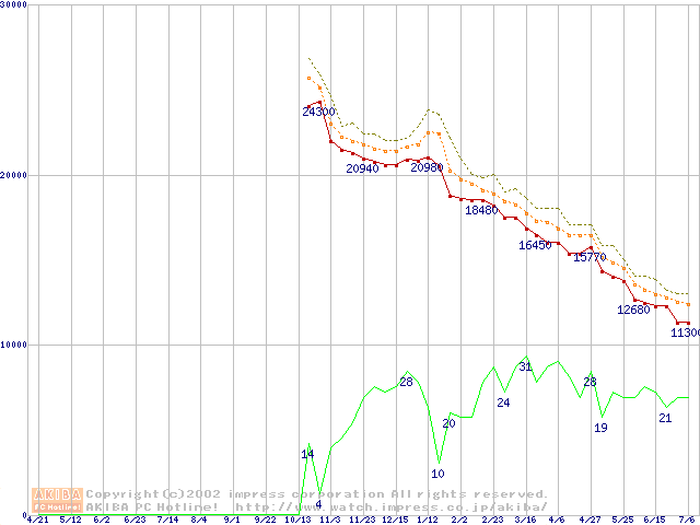 Athlon XP 1700+ (1.47GHz) リテールパッケージの価格推移