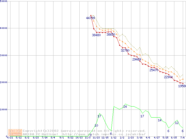WD Caviar (7200rpm,UltraATA/100,2MB)の最安値推移