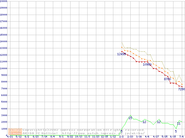Socket A (Morgan,PGA,FSB 200MHz,L2 64KB)の最安値推移