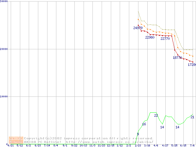 Athlon MP 1600+ (1.4GHz) リテールパッケージの価格推移