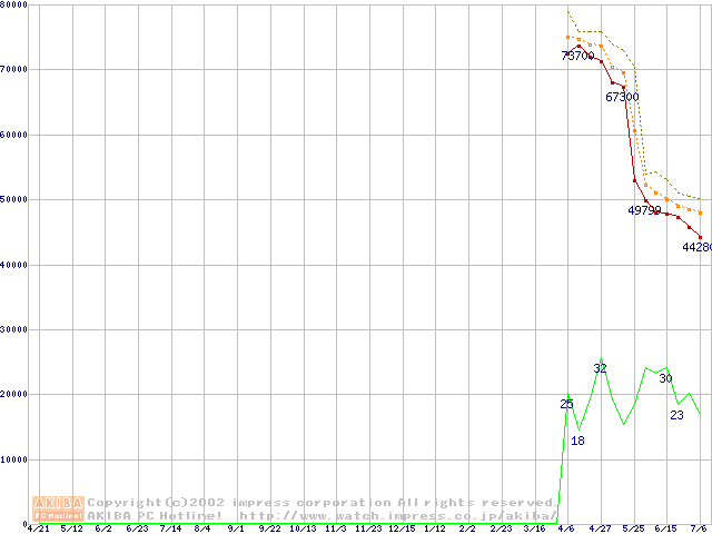 Socket 478 (micro-PGA,FSB 400MHz,L2 512KB,Northwood)の最安値推移
