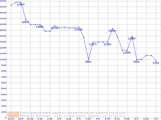 | [↓次グラフ]: | Socket A (Thunderbird,PGA,FSB 266MHz,L2 256KB)の最安値推移 |