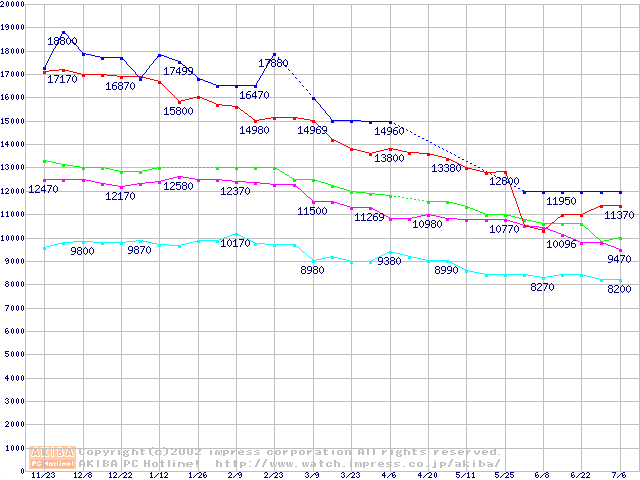 | [↓次グラフ]: | 541DX (5400rpm,UltraATA/100)の最安値推移 |