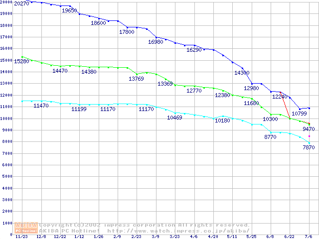 | [↑前グラフ]: | 541DX (5400rpm,UltraATA/100)の最安値推移 |
