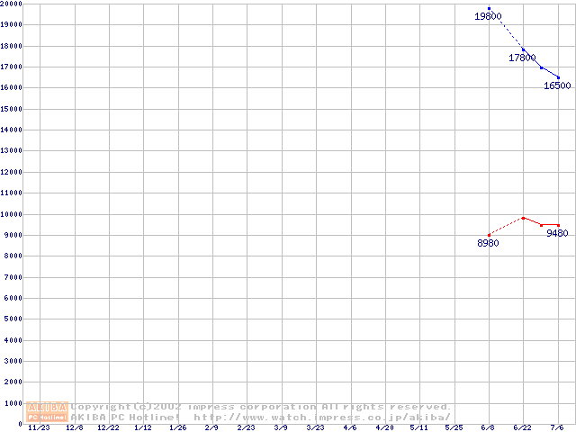 | [↓次グラフ]: | PC800-45 DRDRAM RIMM ECC対応の最安値推移 |