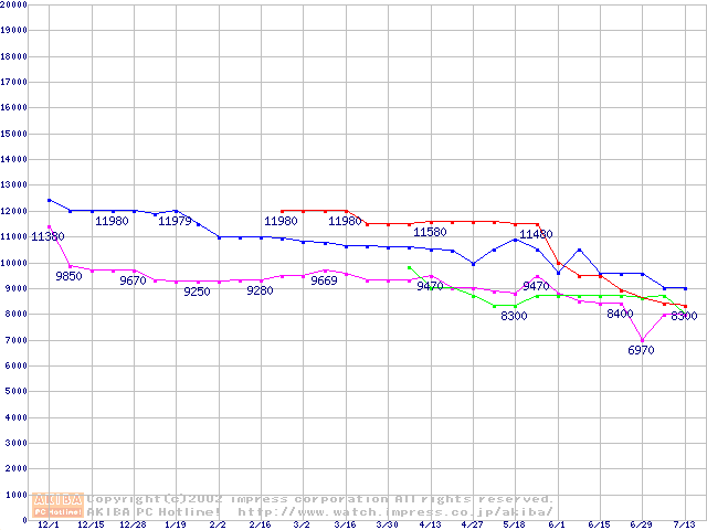 | [↓次グラフ]: | 2.5インチHDD 20GB~30GB未満(9.5mm厚)の最安値推移 |