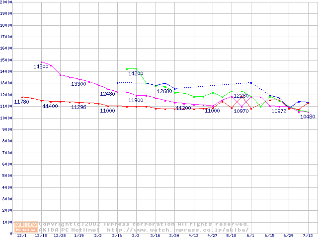 | [↑前グラフ]: | 2.5インチHDD 10GB~20GB未満(9.5mm厚)の最安値推移 |