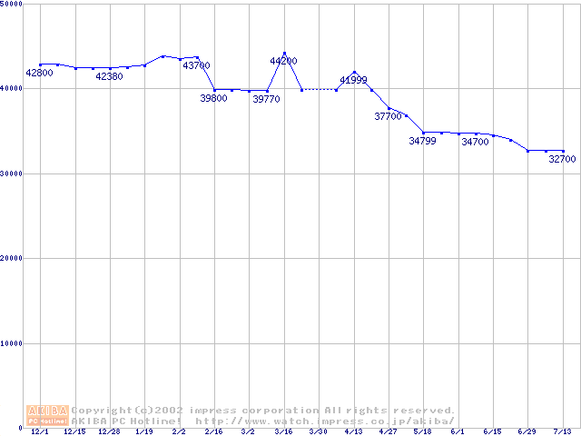 | [↑前グラフ]: | 2.5インチHDD 40GB~50GB未満(9.5mm厚)の最安値推移 |