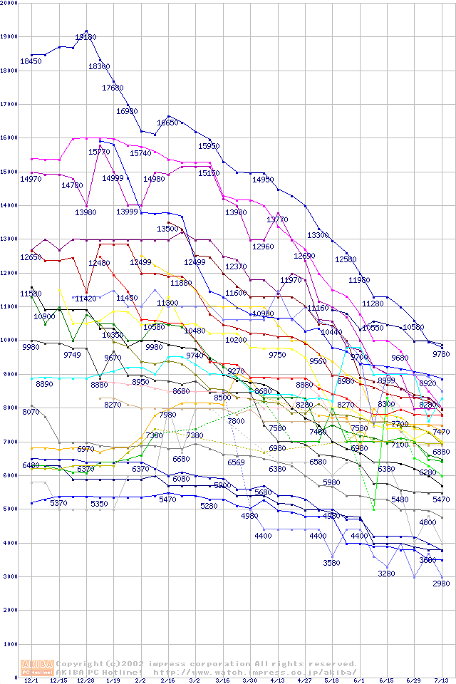 CPU主要製品(最安値1万円~2万円未満)の最安値推移