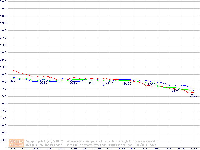 | [↑前グラフ]: | HDD 100GB以上(5400rpmクラス)の最安値推移 |