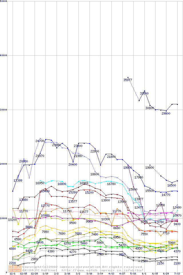 メモリ主要製品の最安値推移
