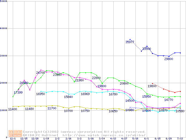 メモリ主要製品の最安値推移