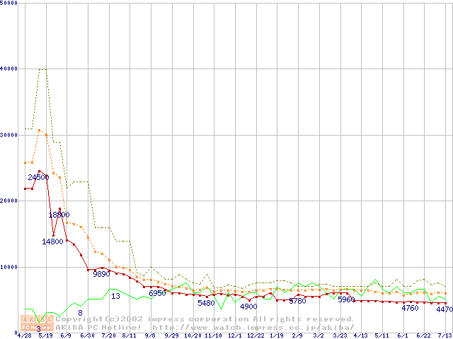 PC800-45 DRDRAM RIMM ECC対応の最安値推移