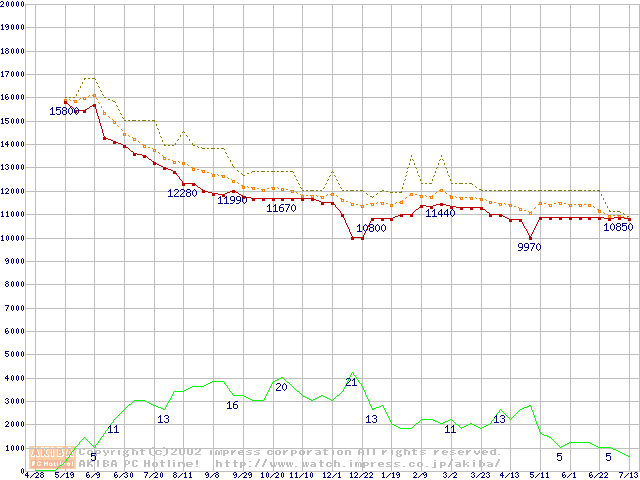 MPG3xxxAH-E (7200rpm,UltraATA/100)の最安値推移