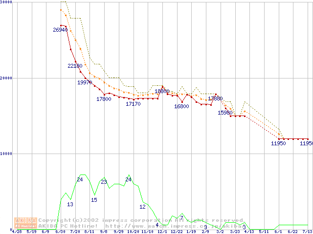 DiamondMax D540X (5400rpm,UltraATA/100,40GB/Platter)の最安値推移