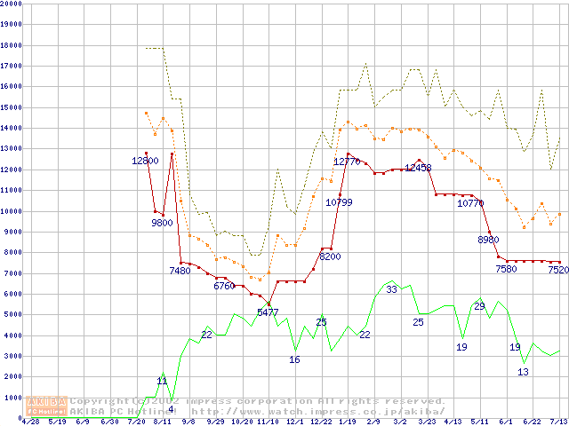 PC2100(DDR266) DDR SDRAM DIMM ECC対応 Registeredタイプの最安値推移