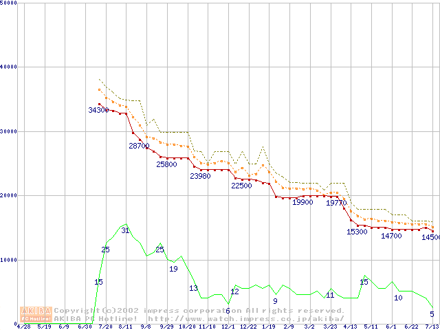 Pentium III 1.13AGHz FC-PGA2 リテールパッケージの価格推移