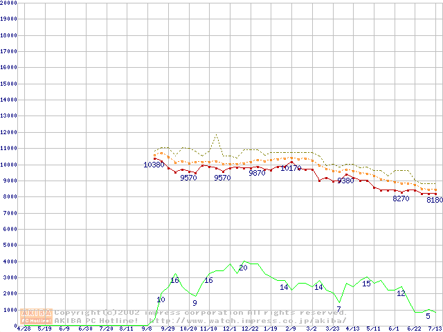 DiamondMax D540X (5400rpm,UltraATA/100,40GB/Platter)の最安値推移