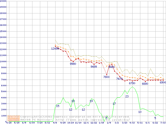 Duron 1GHz リテールパッケージの価格推移