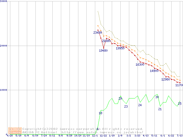 DiamondMax Plus D740X (7200rpm,UltraATA/133,40GB/Platter,流体軸受)の最安値推移