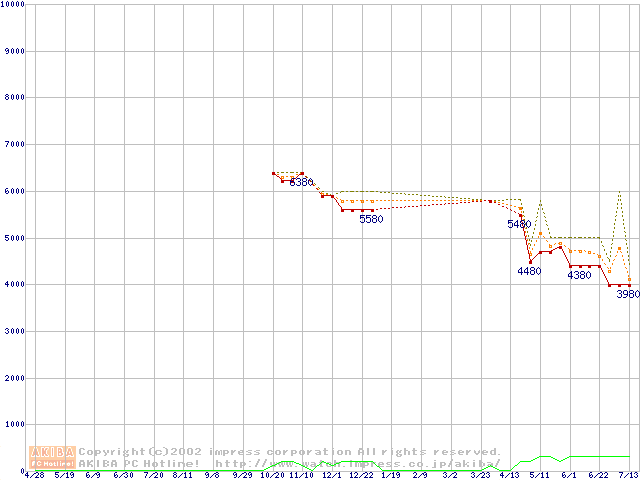 Socket 370 (PGA,FSB 133MHz,L2 64KB)の最安値推移