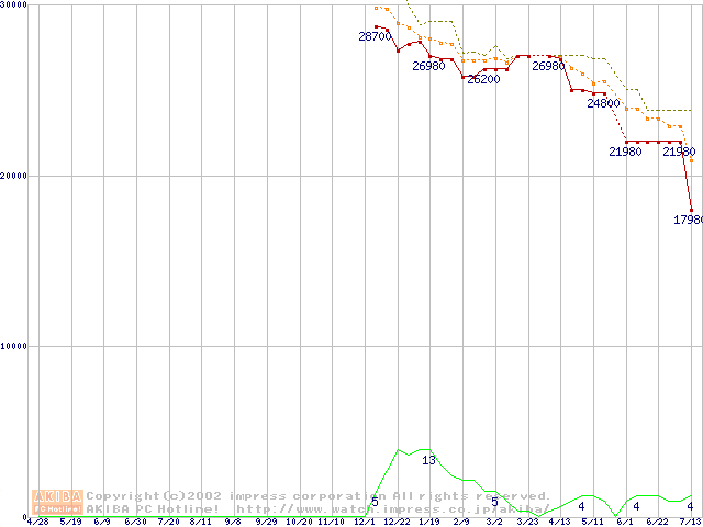 DKシリーズ (9.5mm,4200rpm,流体軸受)の最安値推移