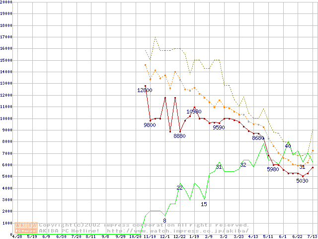 PC2700(DDR333) DDR SDRAM DIMMの最安値推移