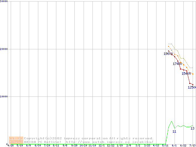 Deskstar 120GXP (7200rpm,UltraATA/100 2MB)の最安値推移