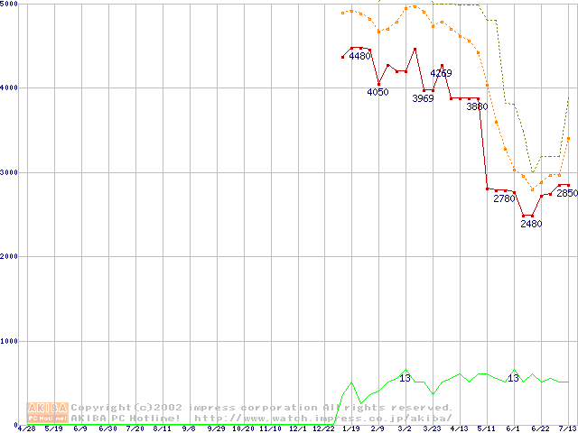 メモリ主要製品の最安値推移