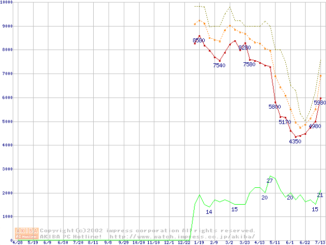 メモリ主要製品の最安値推移