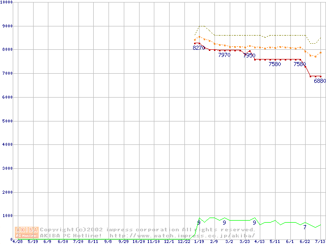 Socket 370 (PGA,FSB 100MHz,L2 64KB)の最安値推移
