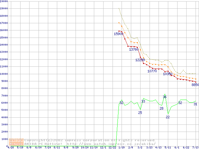 Celeron 1.30GHz FC-PGA2 リテールパッケージの価格推移