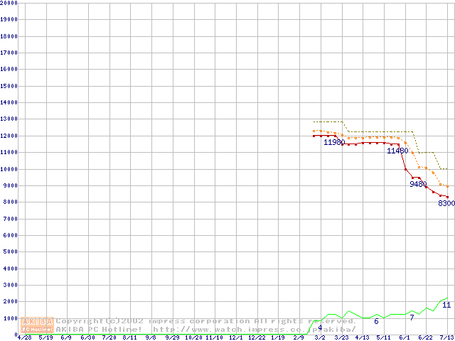 MHRシリーズ (9.5mm,4200rpm,UltraATA/100,2MB,20GB/プラッタ,流体軸受)の最安値推移
