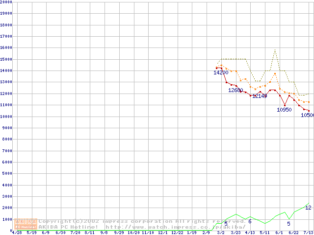 MHRシリーズ (9.5mm,4200rpm,UltraATA/100,2MB,20GB/プラッタ,流体軸受)の最安値推移