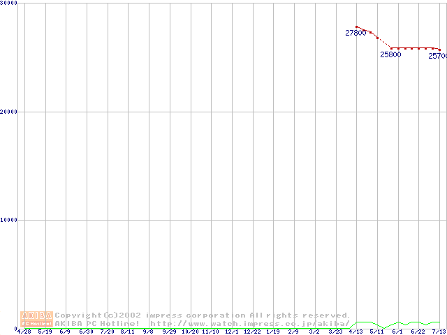 Travelstar 40GN (9.5mm,4200rpm,UltraATA/100,20GB/Platter,2MB,流体軸受)の最安値推移