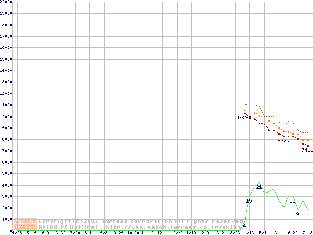 Deskstar 120GXP (7200rpm,UltraATA/100 2MB)の最安値推移