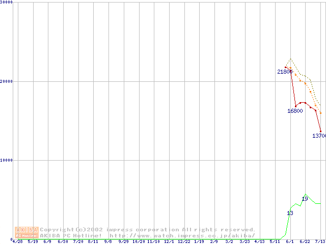 Travelstar 40GNX (9.5mm,5400rpm,UltraATA/100,20GB/Platter,8MB,流体軸受)の最安値推移