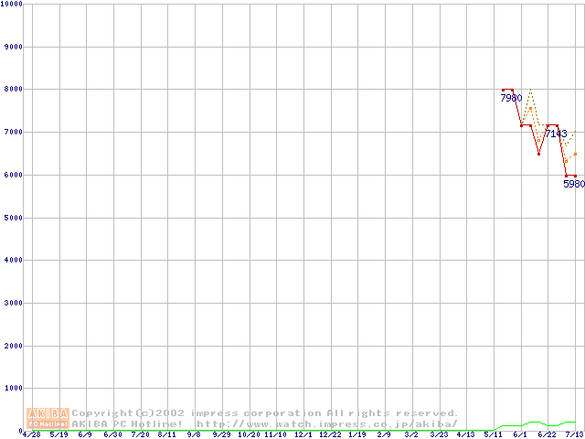 PC3200(DDR400) DDR SDRAM DIMMの最安値推移