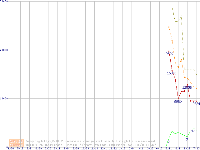 PC3200(DDR400) DDR SDRAM DIMMの最安値推移