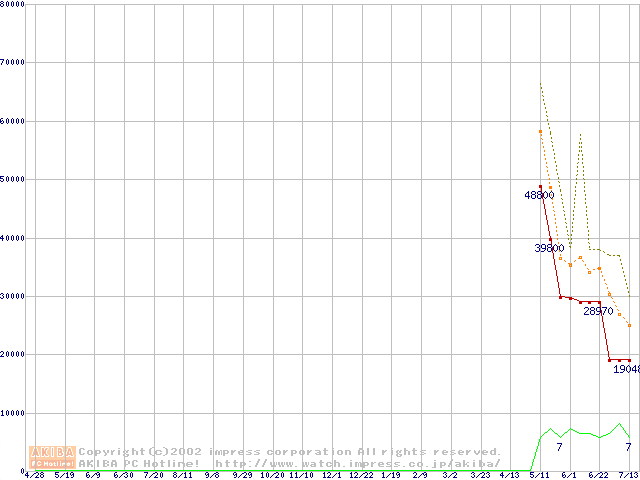 PC3200(DDR400) DDR SDRAM DIMMの最安値推移