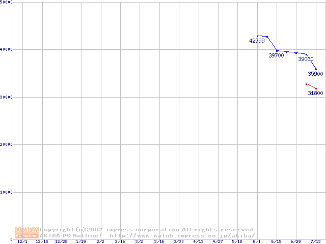 | [↑前グラフ]: | Travelstar 15GN (9.5mm,4200rpm,UltraATA/100,512KB,流体軸受)の最安値推移 |