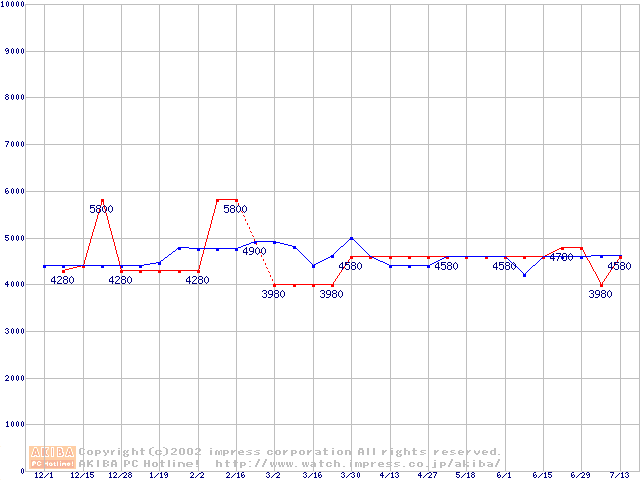 | [↑前グラフ]: | Socket 370 (FC-PGA,FSB 66MHz,L2 128KB)の最安値推移 |