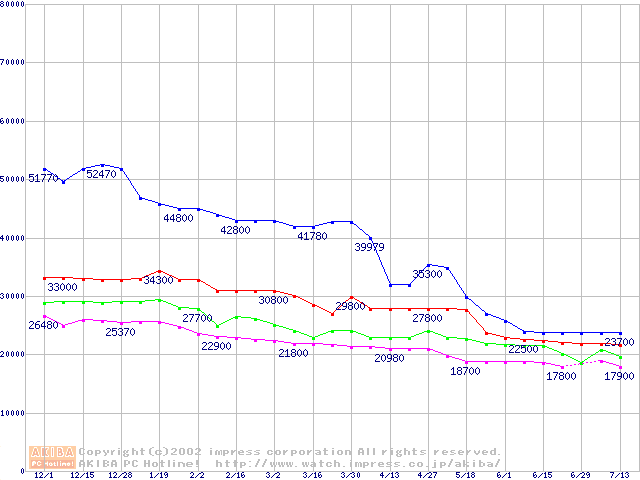 | [↑前グラフ]: | Socket 478 (micro-PGA,FSB 400MHz,L2 512KB,Northwood)の最安値推移 |