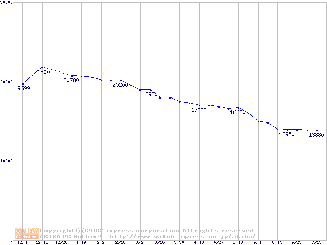 | [↓次グラフ]: | U6 (5400rpm,UltraATA/100 2MB 40GB/Platter)の最安値推移 |