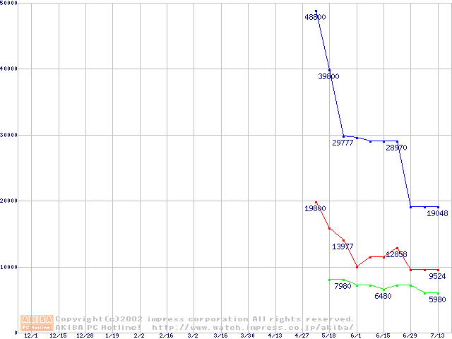 | [↑前グラフ]: | PC3000(DDR366) DDR SDRAM DIMMの最安値推移 |